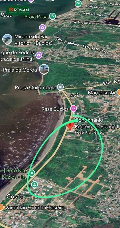 Área com 54.450 m² frente para o mar na Praia Rasa em Búzios, localizada na Rodovia RJ 102.