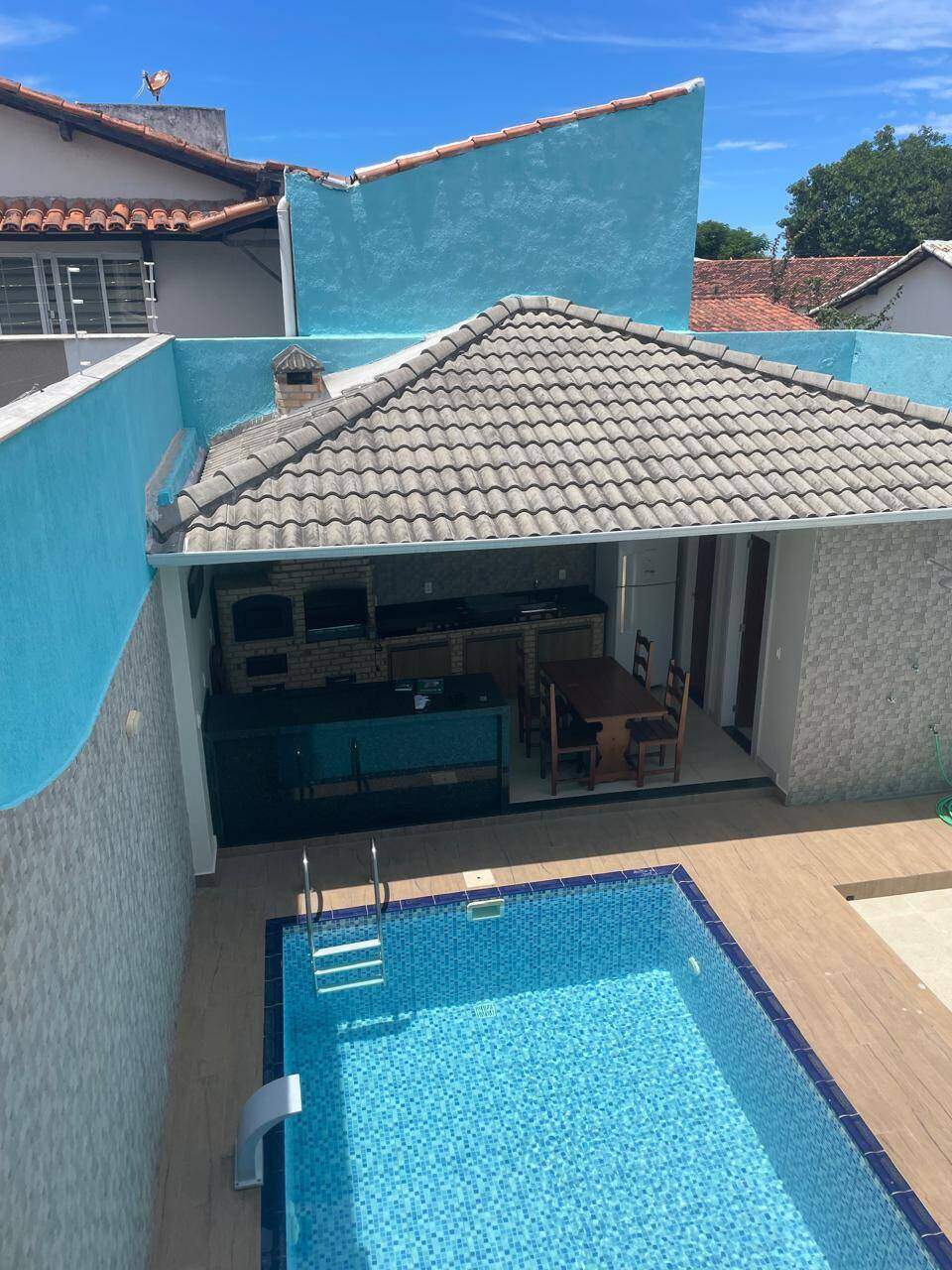 Área de lazer: Piscina, Churrasqueira com bancada Banheiro externo Garagem coberta para 3 veículos.