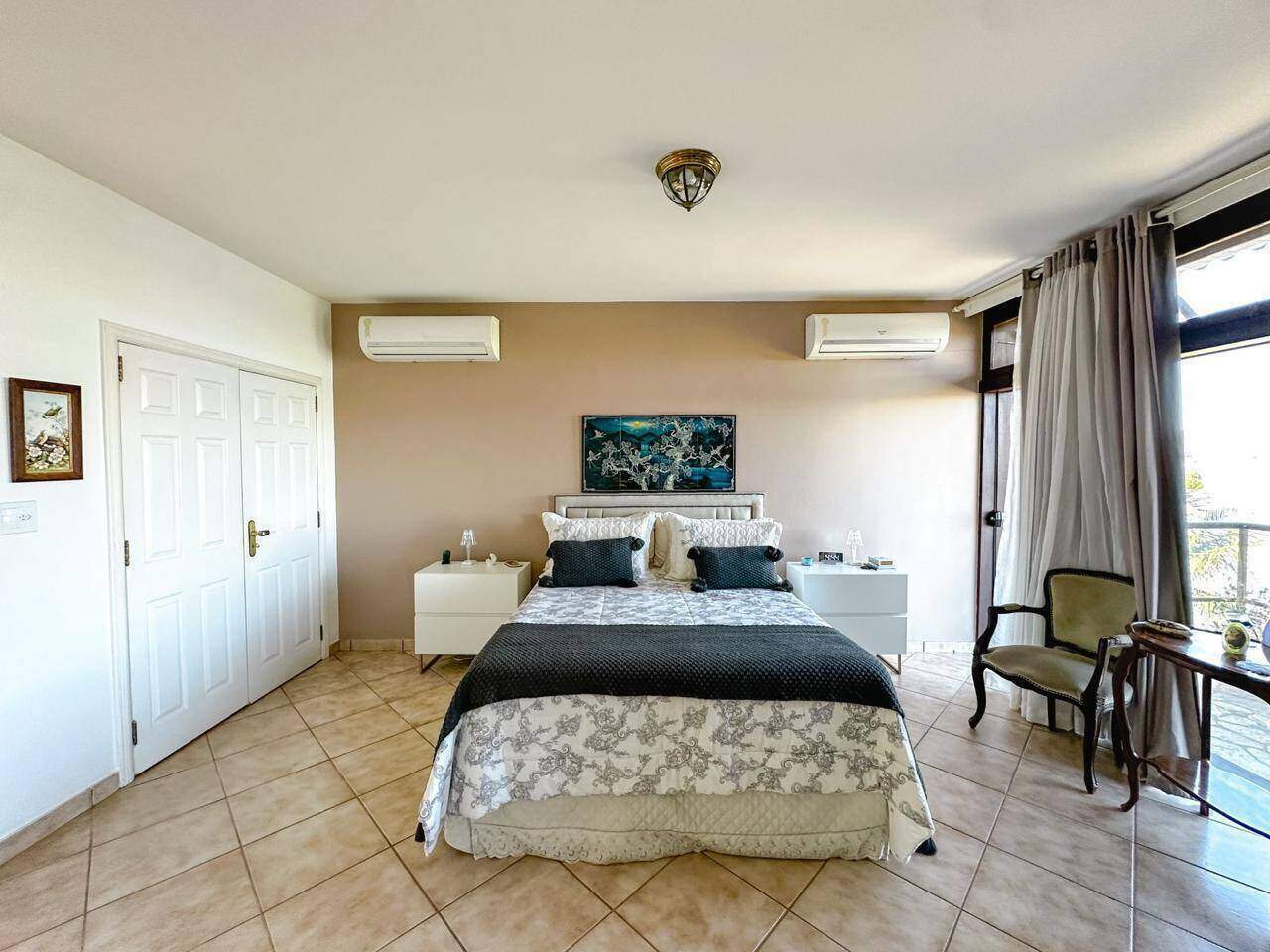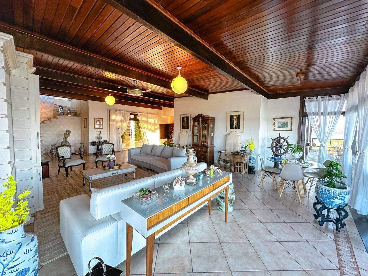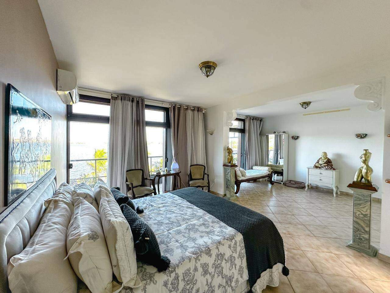 Situada em um amplo terreno de aproximadamente 20 mil metros quadrados, é um verdadeiro refúgio de luxo e conforto. A área construída é de cerca de mil metros quadrados, oferecendo uma arquitetura contemporânea e elegante. Ao entrar, você é recebido por uma espaçosa sala com vários ambientes, ideal para diferentes momentos e ocasiões, todos eles com grandes janelas que permitem uma vista panorâmica dos arredores e trazem muita luz natural. A sala de estar e de jantar são integradas, criando uma atmosfera acolhedora e sofisticada. A cozinha é ampla, moderna e equipada com eletrodomésticos , pensada para atender às necessidades de quem aprecia gastronomia . O design clean e funcional a torna perfeita tanto para grandes eventos quanto para o dia a dia. Contém seis quartos, todos suítes, cada um com banheiros luxuosos e varandas. As vistas dos quartos são espetaculares, com paisagens naturais. Possui cinco banheiros extras, distribuídos em áreas comuns da casa, e uma garagem espaçosa com cinco vagas, garantindo segurança e comodidade para os moradores e visitantes. Espaço para Heliporto, que facilita o acesso à propriedade de forma exclusiva. Há também uma linda lagoa, que traz um toque de beleza. Uma vasta área de lazer , com piscina. Tudo isso cercado por uma bela vista de todos os ângulos, integrando natureza e sofisticação em um só lugar.