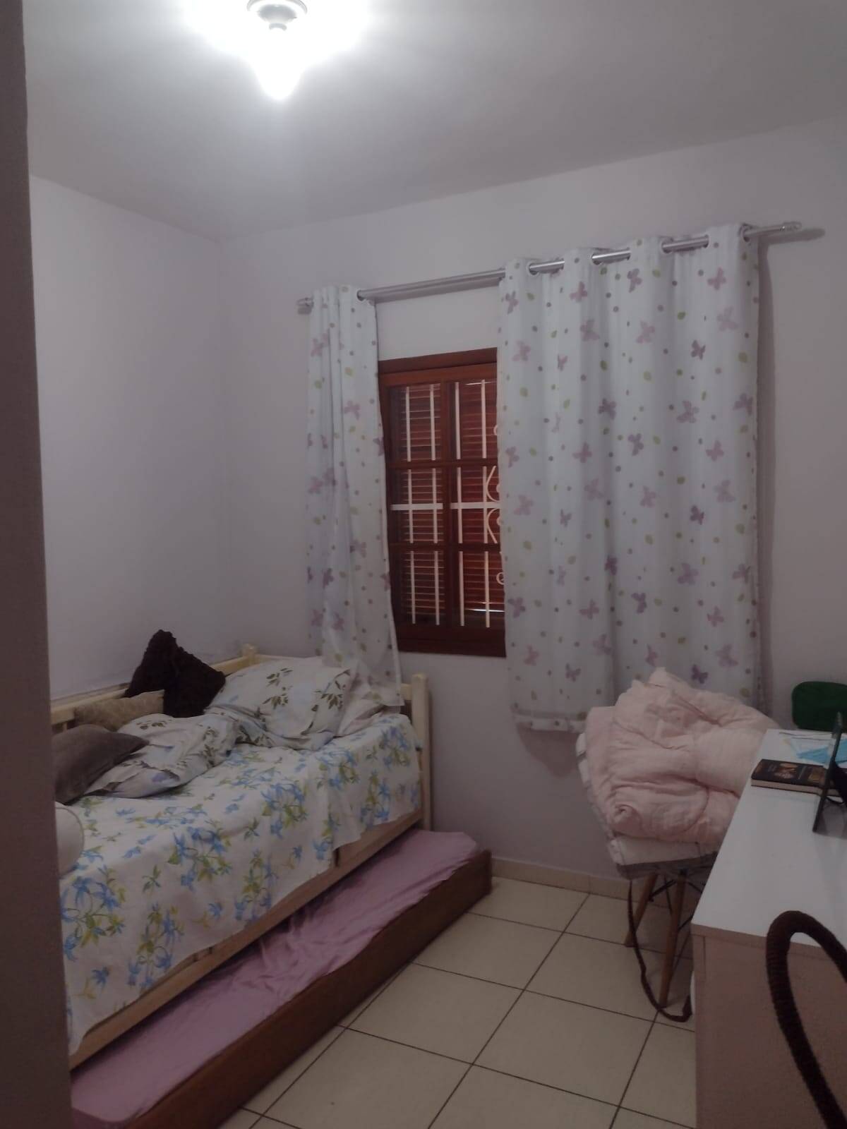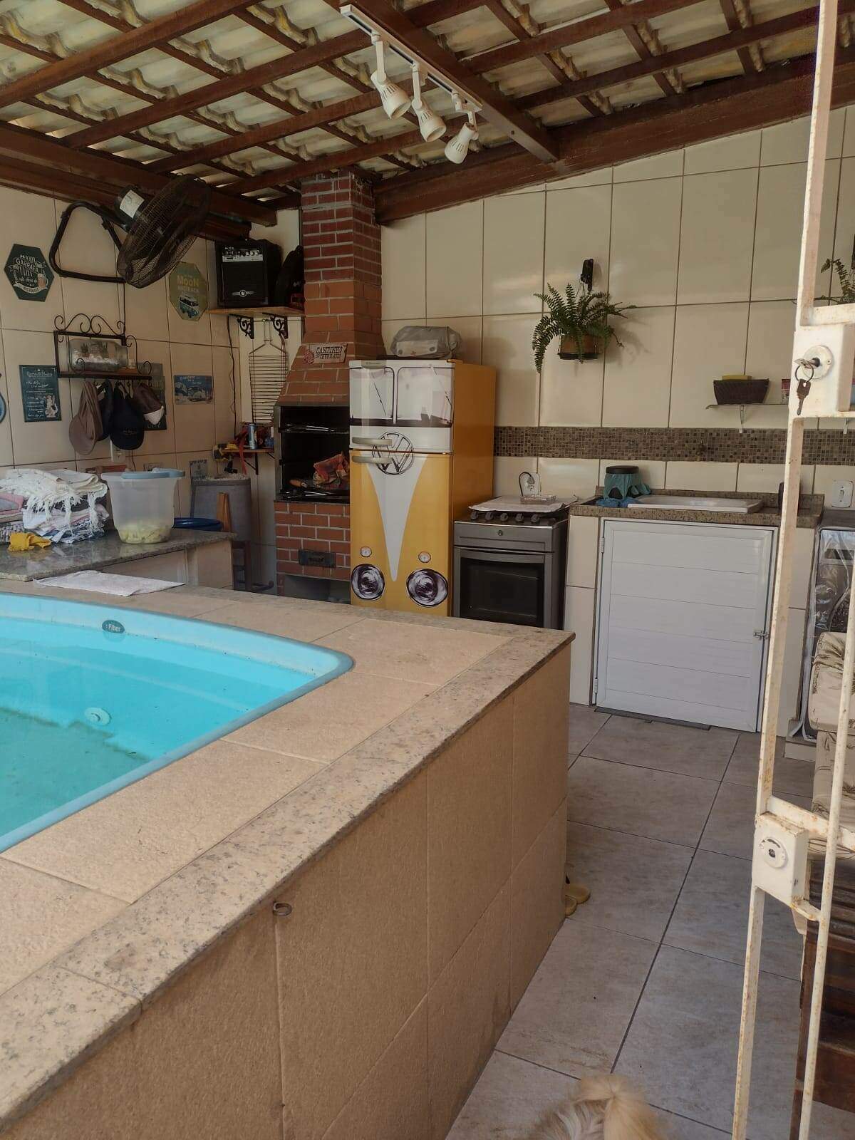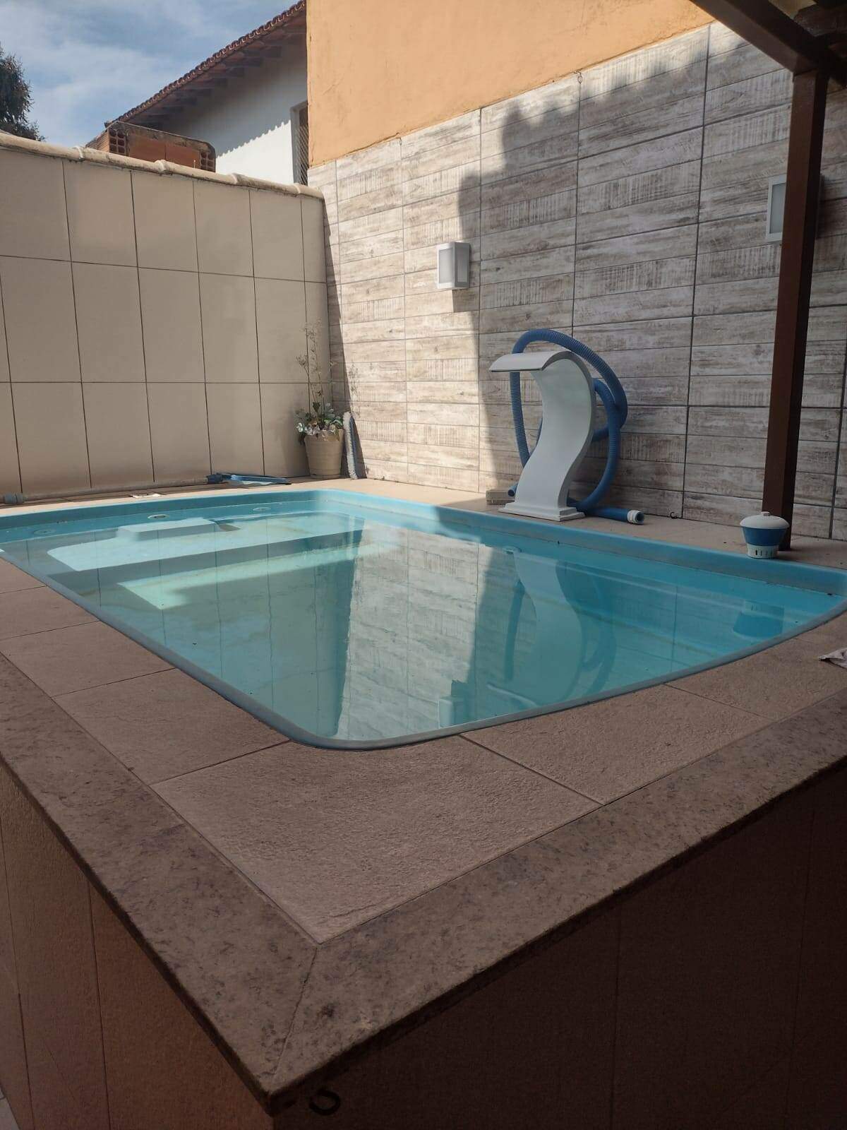 Casa independente , contendo 3 quartos, sendo 2 suítes na parte superior e na parte inferior 1 quarto, banheiro social, sala e cozinha com armários, área gourmet e piscina, garagem coberta para 2 carros. Obs: contém placa solar. Posição do sol pela manhã.