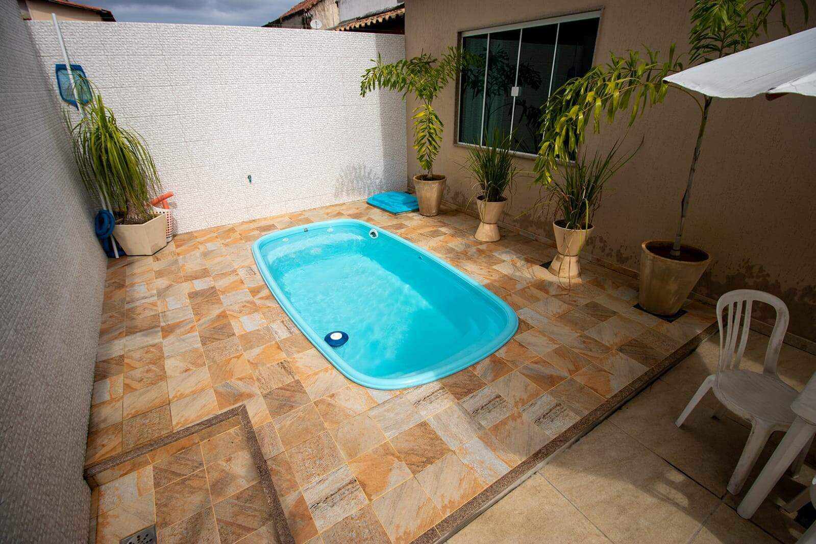 Excelente casa duplex, em localização privilegiada, contendo três quartos, sendo um deles suíte, a suíte e o um dos quartos com móveis planejados, sala com dois ambientes banheiro social, lavabo, cozinha planejada, corrimão inox, acabamentos e soleira com granito bege bahia, toda a área externa em textura grafitado, todo o quintal revestido com piso cerâmico, piscina Igui nova e vagas para até cinco carros, com área construída de e 120 m² o outro imóvel é uma edícula com 74m² ótimo pra quem precisa de acessibilidade, com área gourmet, cozinha fogão a lenha e churrasqueira.