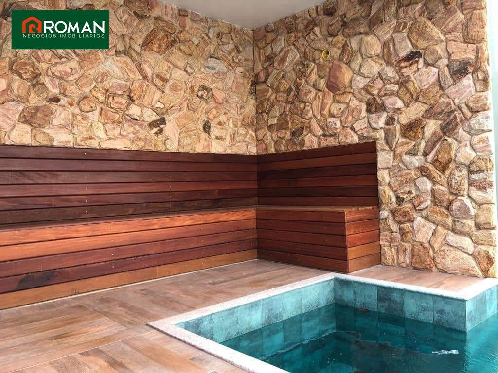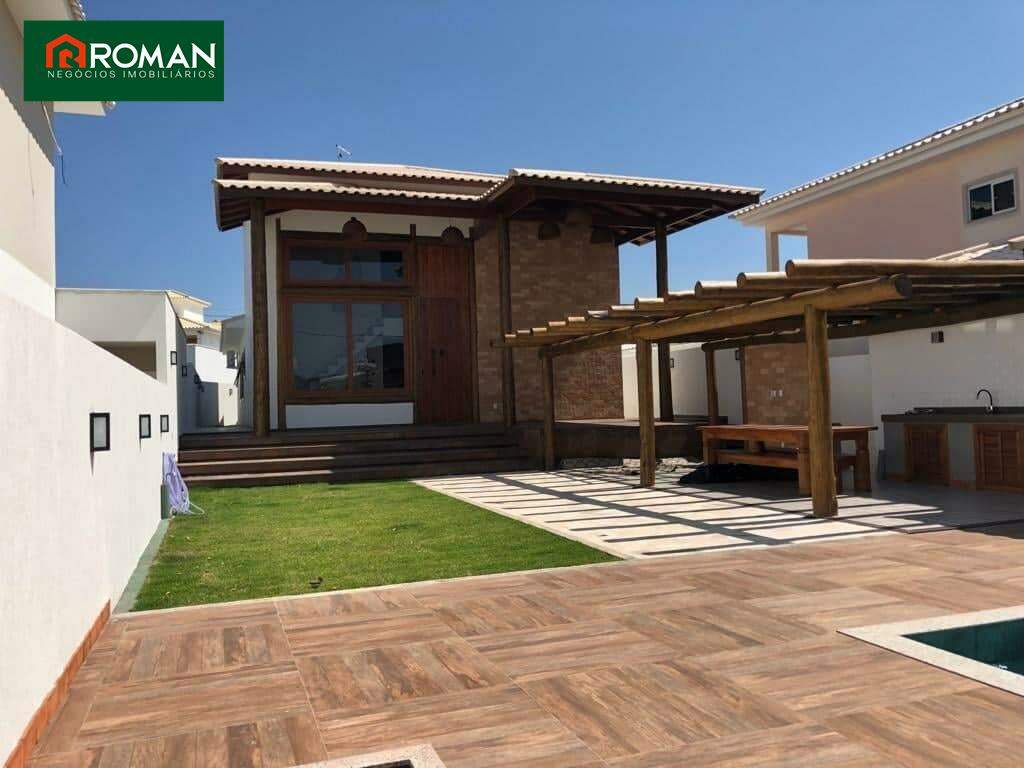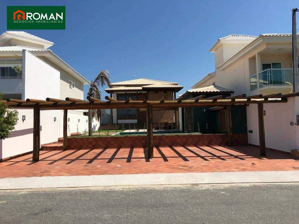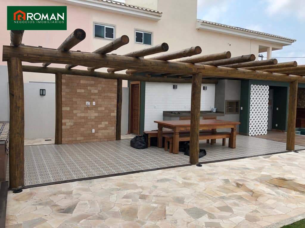 Casa situada em São Pedro da Aldeia, composta por 3 suítes, sendo 1 master, todas com closet, 1 lavabo, sala, cozinha americana, sala de jantar com jardim de inverno, escritório, quarto de empregada com banheiro, piscina, área gourmet, lavabo e sauna na área de lazer.