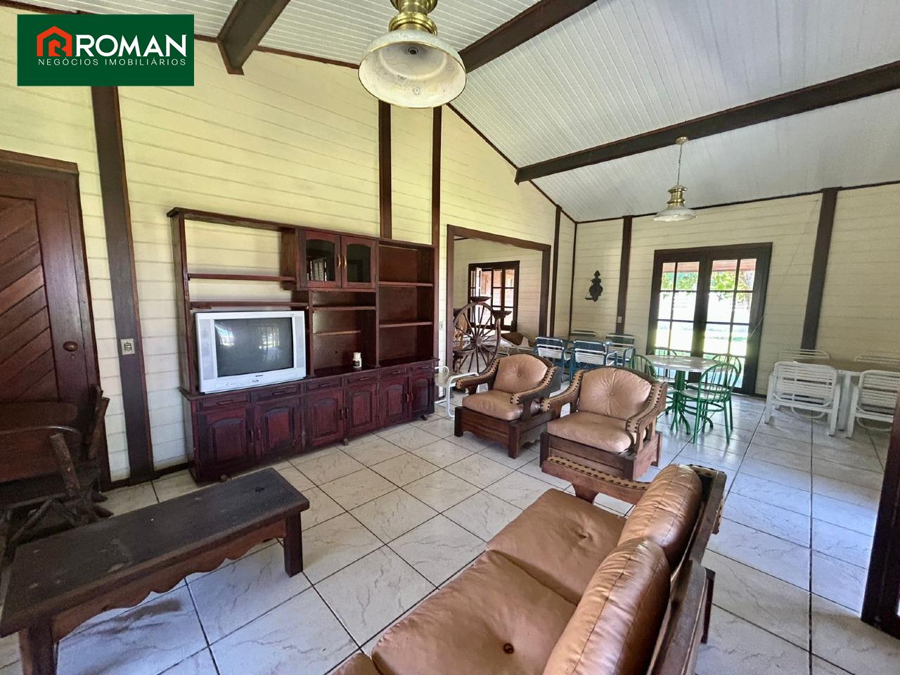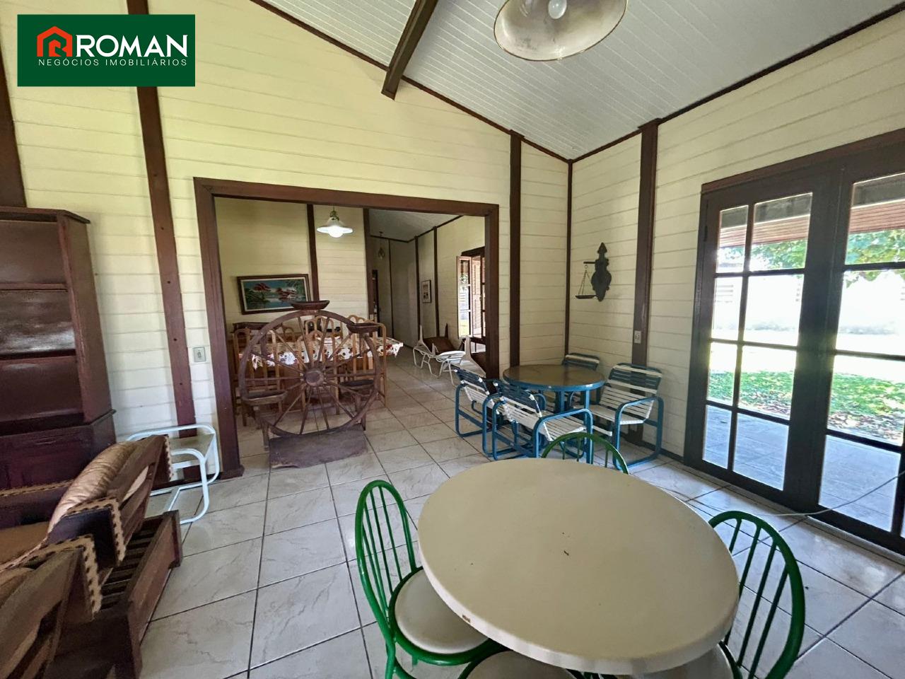 Casa contendo: sala 3 ambientes, 1 sala de leitura, 4 quartos sendo 2 suítes, copa cozinha ampla, dependência de empregada, área de serviço, área de churrasqueira, salão de jogos e a casa de caseiro.