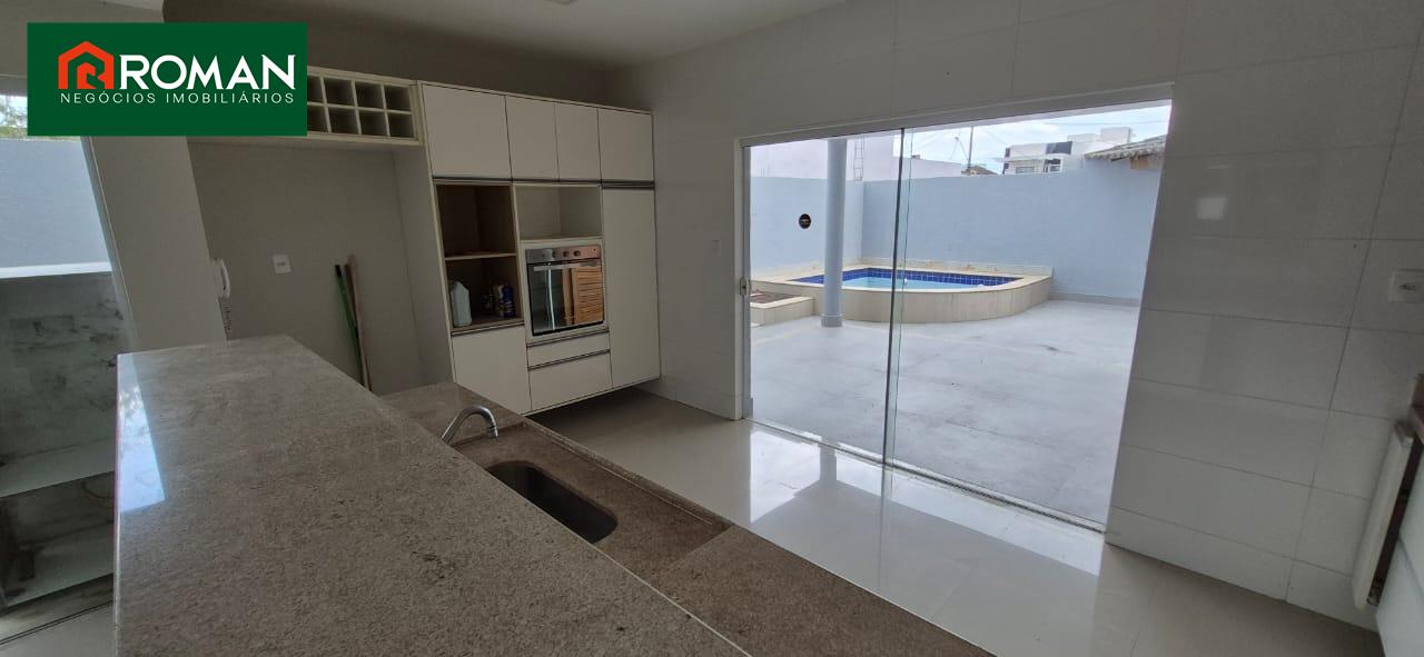 Casa em bairro nobre de Cabo Frio contendo no 1º piso: sala ampla com 2 ambientes, cozinha integrada toda planejada, 1 quarto, 1 banheiro social, área de serviço, área gourmet e piscina. No 2º piso: 3 suítes sendo 1 com closet e varanda.