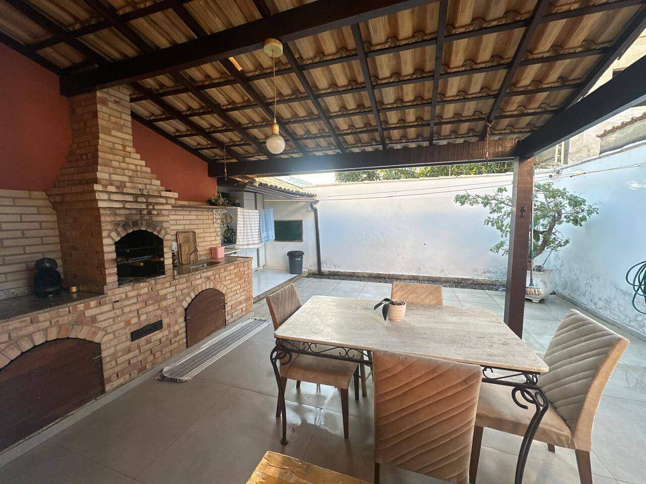 Casa linear composta por: sala 2 ambientes, cozinha planejada com fogão cook top, coifa, , área gourmet com churrasqueira, área de serviço, banheiro social, 2 suítes, cômodos amplos, quintal na frente, nos fundos área ampla, garagem para dois veículos.